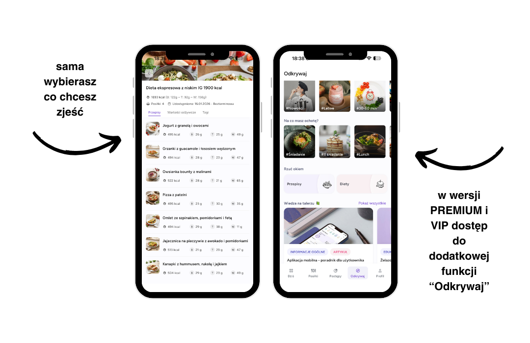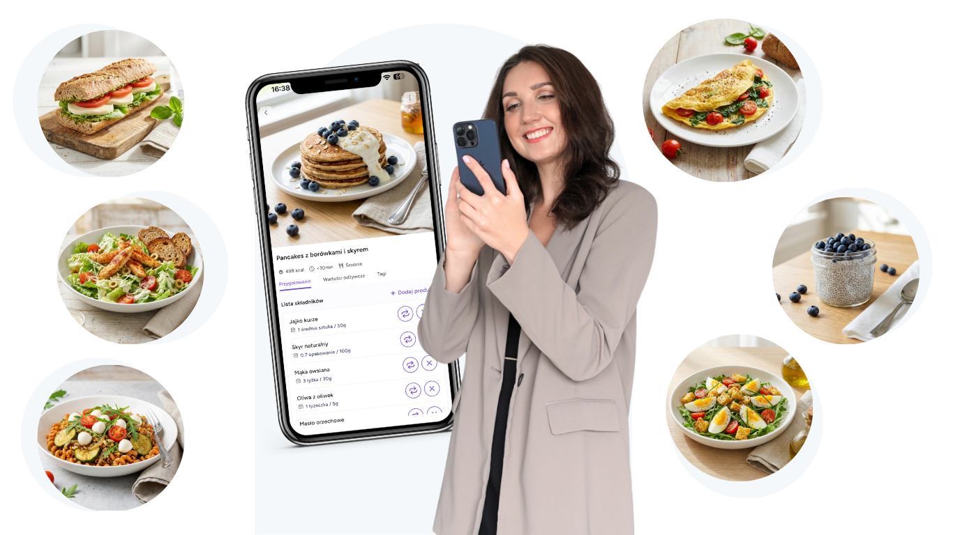 Jeśli tak, to jesteś w dobrym miejscu! Elastyczność, swoboda i radość z jedzenia – tak właśnie opisałabym to, co czeka Cię, gdy już będziesz korzystać z przepisów w aplikacji! Koniec ze sztywnymi rozpiskami, czas na Twoje wybory, Twoje smaki, Twój cenny czas i Twoje zdrowie, o które nigdy nie było tak łatwo jak teraz!
